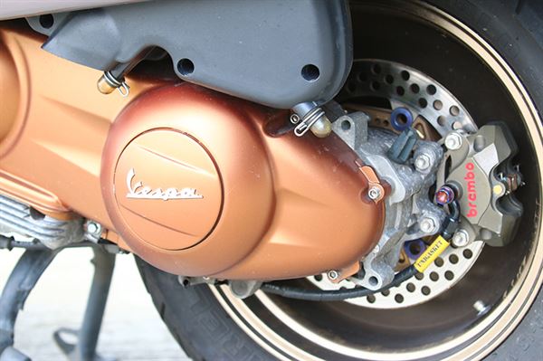 以往會出現在跑車上BREMBO與RIZOMA的搭配現在偉士牌也能看的到