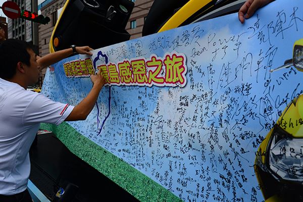 經過半個月旅程之後的9月22日,車隊再度回到了弘道基金會位於北平東路的會址前,由會長王大喬將全台車友匯聚的22000張發票,捐給弘道基金會的代表。