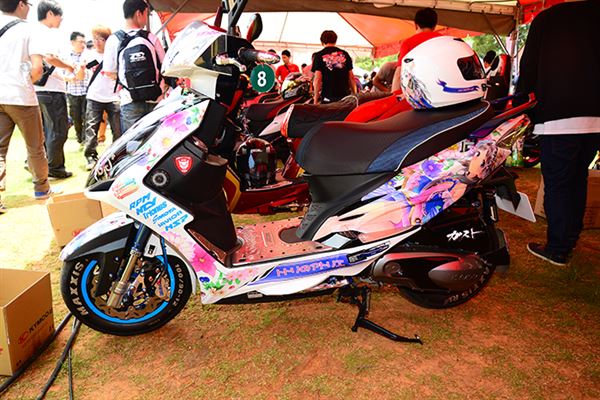 從日本起源的痛車文化,在台灣以速克達族群的接受度最高,在這次會場也有不少痛車參與展出,它們除了不同的圖片彩貼之外,改裝部品也都相當講究。