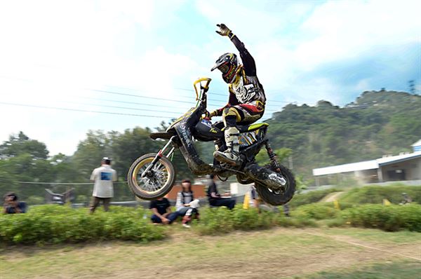 改裝組第一名小光,在越過終點跳台時總是不忘來點花式娛樂觀眾