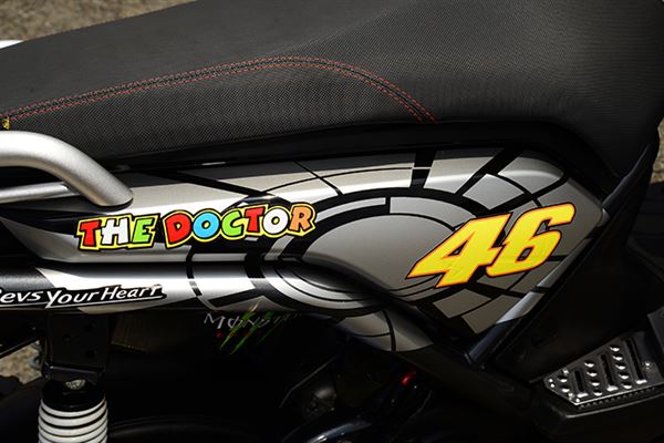 搭配白鐵管與紅金配色的輪框,機械面的設計也頗為講究