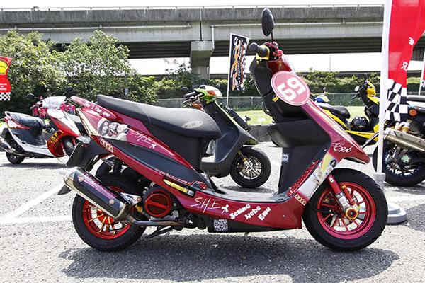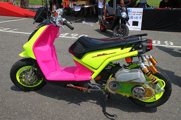 日比谷推出的後移BW’S,由螢光粉紅搭配爆炸式的車殼塗裝