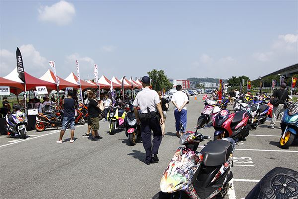 熱鬧的會場出現了警察關心,不過本次活動已經過合法申請,而車友們都相當遵守秩序,因此只是進來參觀一下年輕人的創意吧