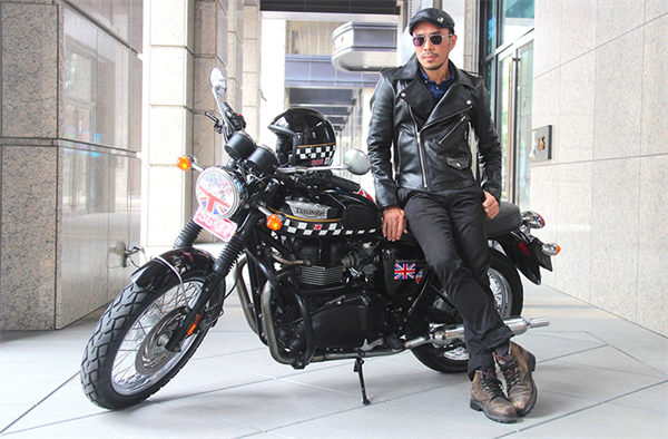 服役17年的職業軍官,退役後轉型成為MajorLin皮帽品牌的創辦人兼設計師,身為前空軍戰鬥機修護軍官,服役時就接觸大型重機,本身具有軍官、騎士、紳士等特質,就是愛T100的復古紳士味與從頭到腳的皮革騎士風。