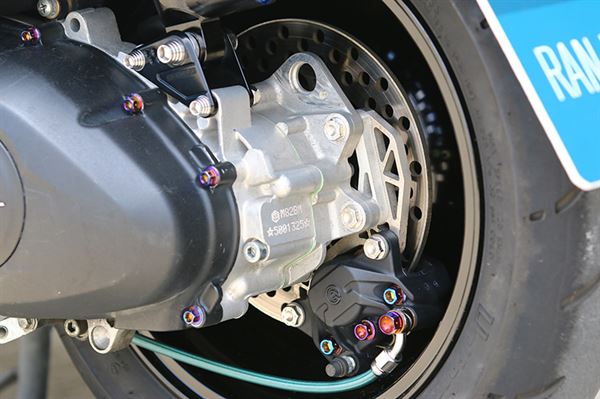 客製化賽車坐墊造型俐落讓整車的線往後延伸,跑車風格再加分