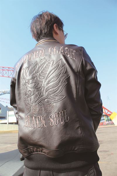 ■外套:Levi's美國版皮衣/上衣:Dickies、TMA協會路權T恤/褲子:Dickies/鞋子:手工短馬靴/眼鏡:岡崎健司/手錶:OMEGA30年機械錶/腰包:GREGORY/寶貝兒子小鶴