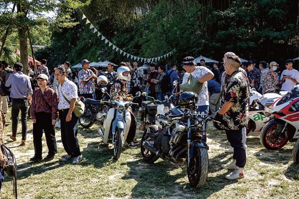 而這類的復古車風潮也帶起了復古車聚的流行,今年是第二屆的花襯衫路騎就是以復古車為主的機車活動,主打在大溪的GOGOBOX進行車聚,並圍繞著石門水庫環湖路的路騎,並將活動中的收益當中的一部分捐給桃園家扶中心的公益活動,當天現場一早就迎來了許多喜愛復古車的車友穿著花襯衫一同集合,在車友們地號召下一同圍繞著石門水庫湖邊騎行,享受風光明媚的山水機車騎行旅遊,到了活動會場也有美式餐車提供新鮮美味的漢堡和咖啡等應景復古風格的食品,和古著攤位有許多復古風格的服飾選購,現場許多車友騎著自己的復古改裝輕檔車如野狼等手工車到場,也有不少偉士牌騎士,而凱旋、MOTO GUZZI、哈雷等歐美復古車重機也難得一件的齊聚一堂,另外也有騎著現代車如HONDA、YAMAHA重機和輕型白牌車MONKEY車主們也穿著花襯衫一起參加活動。
