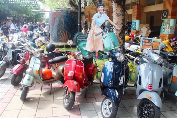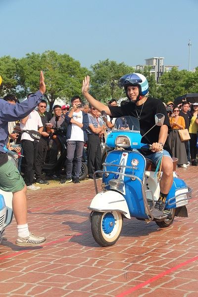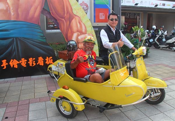 會師當天風和日麗,結合嘉義文化創意產業園區內復古電影看版展,展出羅馬假期電影手繪海報與會師相互輝映,海報點綴了會師的文化藝術氣息,並與車友們的車子一同參與了這歷史的一刻!在復古的氛圍下,上午就集結了不少車友,120個各式攤商也陸續就位準備面對今年的偉士大軍!