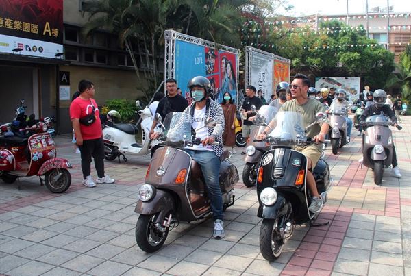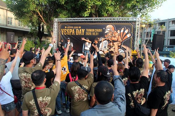 10點簡單的開幕儀式揭開了會師的序幕,主舞台成為各個拍照打卡的最佳地方。今年的會師圖徽也別具巧思,象徵嘉義在地名產火雞肉飯的火雞人騎著偉士牌機車,還有阿里山火車頭,是大家爭相收藏的作品!紀念品幾乎供不應求,全數完售。整天下來約有3000人次來到會場,偉士牌車輛更超過2000台,可說是盛況空前!