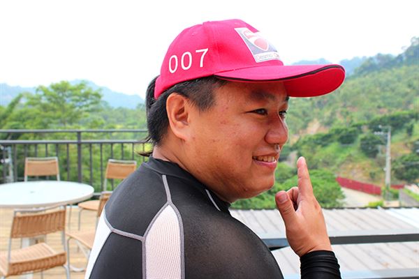 高大的阿想哥為了配合林會長,還特別半蹲以利合影