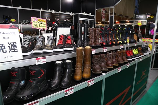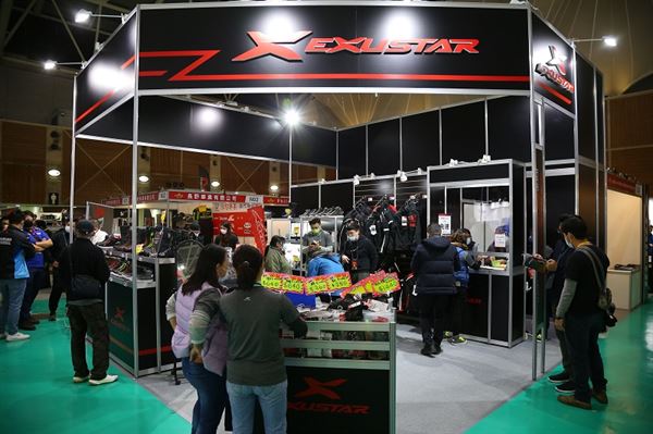 EXUSTAR除了秉持著一貫的品質至上的觀念,專業的研發團隊並接軌來自義大利,法國及美國等地的國際設計師,在功能取向之外結合時尚美感,讓重機的人身部品不只是提供了安全及舒適性的穿著, 更能凸顯時尚的品味,展場中將自家的車靴以及防摔衣和手套以及機車周邊像是防霧貼片,EXUSTAR也沒忘記回饋給顧客一些福利,在攤位兩側入口擺了兩攤小促銷區,展場這幾天也吸引了不少的民眾,而產品的高CP和品質深受大家的喜愛。