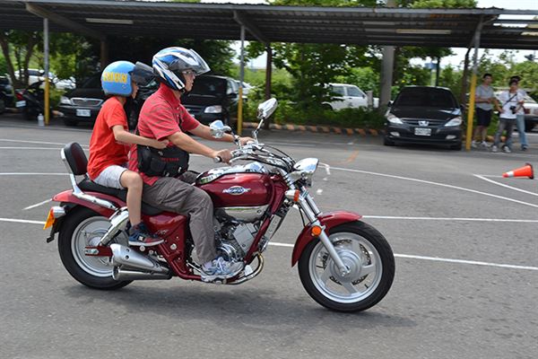 教練小天傳授騎車時各種安全的觀念與方法,看得出來女僕SG對前面的車手很感冒