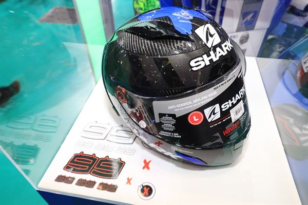 明亮的天藍色搭配上鯊魚鰭造型的LOGO意象,讓前來逛展的民眾絕對不會錯過這間來自法國的著名安全帽品牌:SHARK。身為國際賽事中多位車手的贊助商,SHARK除了展示旗下各級不同功能/風格取向的帽款,更不會錯過著名前motoGP車手、五屆世界冠軍Jorge Lorenzo的特殊彩繪帽款。雖然當今已不再以賽車手身分在場上馳騁,Lorenzo獨特且酷炫的圖騰攀附在擁有碩大鴨尾、充滿競賽氣息的RACE-R Pro GP之上,依舊吸引眾多路人圍觀。
