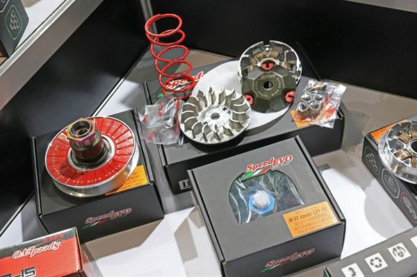 2020年是國內許多重要車款問世的一年,在速克達傳動部件上有所專精的SPEEDEVO金力順在展覽中也推出了當紅車種:勁戰六代以及DRG 158的開閉盤,同時國產雙缸大羊MAXSYM TL的傳動套件也同時可以在現場見到實品展示。此外,Sprint 125、150s等偉士牌車款也有推出相對應的傳動套件。