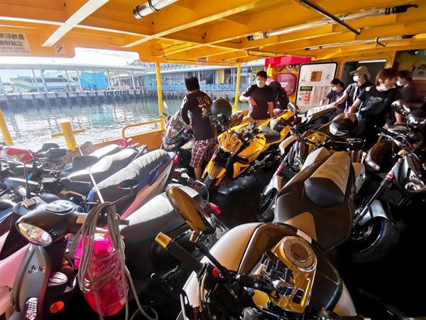 每艘交通船一趟最多只裝載8輛紅牌重機
