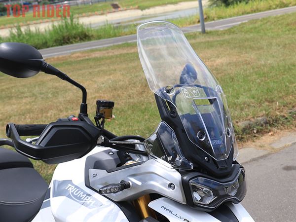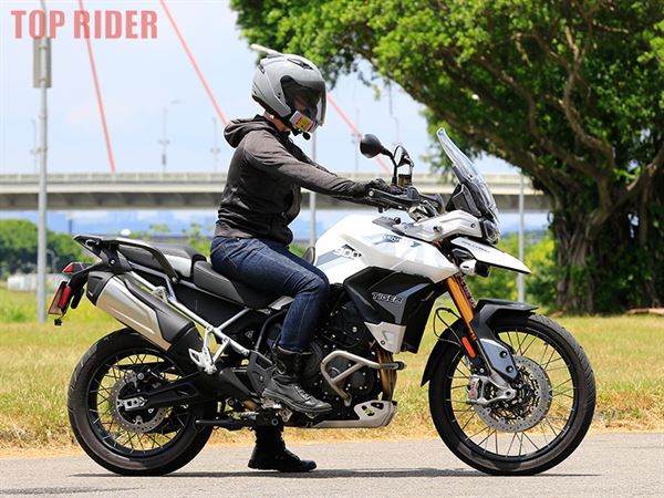 即使將TIGER 900 RALLY PRO的座高調整為較高的870mm,身高175cm的筆者也能透過身體稍稍地挪移來使單腳順利平踩地面;在油箱夾持處的寬度也做出了收窄的修飾,讓TIGER 900 RALLY PRO在變換著地腳時的靈活度與靜止狀態著地性的表現意外出色。