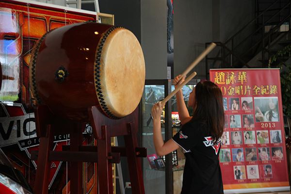 正妹豪邁地擊鼓,為慶祝儀式揭開序幕。