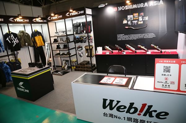WEBIKE的攤位擺滿了YOSHIMURA的排氣管以及RS TAICHI的許多部品,可以在網站上經銷這些大牌子確實不容易,不過在五股展WEBIKE幫你把全部實體都搬出來了,讓你親自來現場看得到摸得到,好好欣賞排氣管的曲線精美的作工,試穿外套的保暖貼身的舒適,讓大家知道WEBIKE在網站上賣的都是真材實料的好貨。