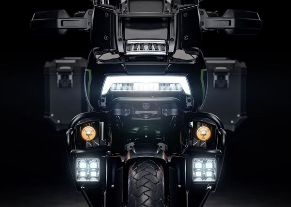 懸吊系統方面,這款車型標配了半主動式電子懸吊,並搭載了許多騎士夢寐以求的 ARH 主動式車高調整系統。這套系統能在車輛停止時自動降低座高至 815mm,大幅降低了大型多功能車的上手門檻,讓騎士雙腳更容易著地,提升停車時的信心與安全感。